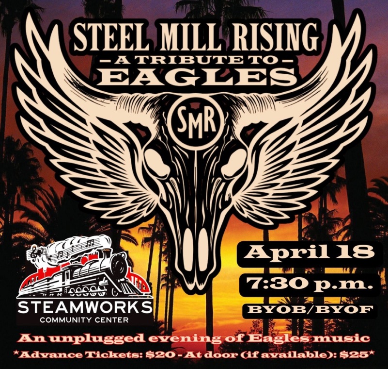 Don't miss out on this EAGLES Tribute Band, Steel Mill Rising, at Steamworks Creative!